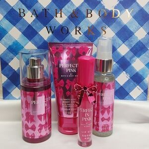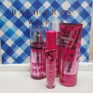 BATH & BODY WORKS 4-PIECE 'PERFECT IN PINK' LIP OIL & BODY SHIMMER GIFT SET