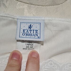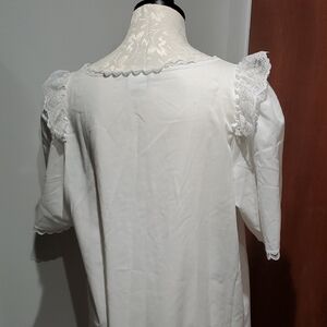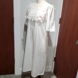 This elegant vintage white chemise features delicate lace detailing and charming pink accents, super soft fabric. Brings a little romance to bedtime! 42" long