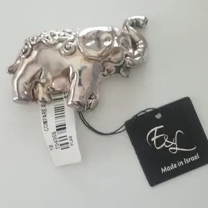 Elegant silver elephant brooch by E&L. Made in Israel.