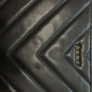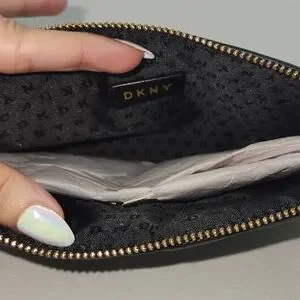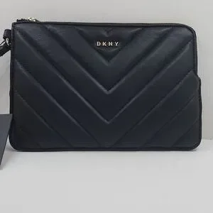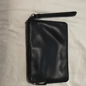 Elegant black quilted design. Features wristlet strap. Sleek and stylish. Used but in very good condition