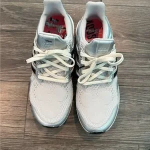Adidas White Sneakers with Black and Red Accents