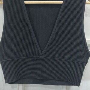 NWOT Aritzia Babaton Sculpt Knit Deep V-Neck Minimalist Crop Tank in Black - L