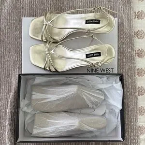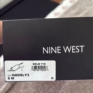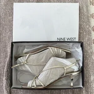 Step into elegance with these Nine West gold heels, featuring a chic strappy design and a comfortable kitten heel.