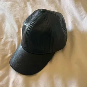 NWOT Free People Hailey Baseball Hat Faux Leather Black