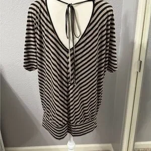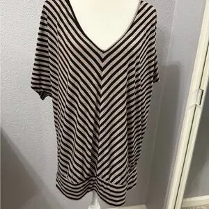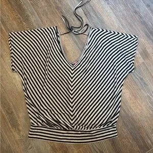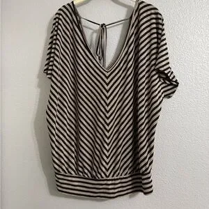 Black and tan Striped V-Neck Top