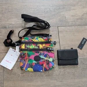 Kipling Purse Bag Handbag Colorful Tie Dye Shoulder Strap Wallet Bundle NWT