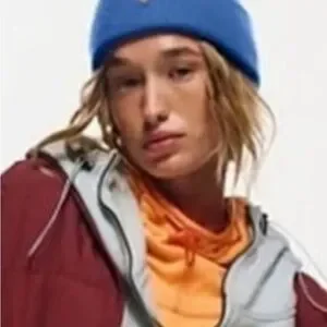 Adorable, Free People Iconic Buti logo beanie❤️. This is the perfect slouchy beanie in the perfect shade of blue to go with your jeans or overalls!