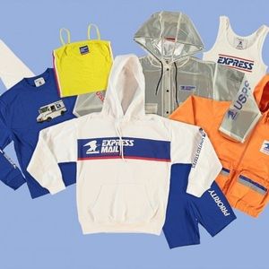 From our Forever 21 x USPS® collection, a knit tube top featuring a straight elasticized neckline, front "Priority" graphic between multicolor striped detail, and a cropped silhouette.