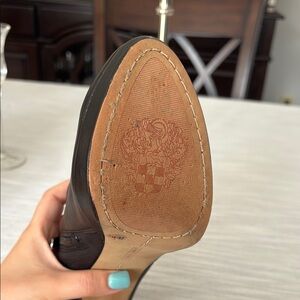 Side zipper. Mild wear as seen in photos. Light scuffing on heel and side of booties. Approximately 4” heel. Smoke free home.