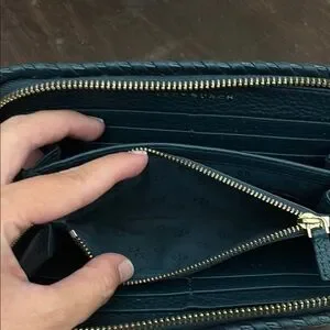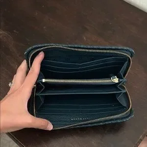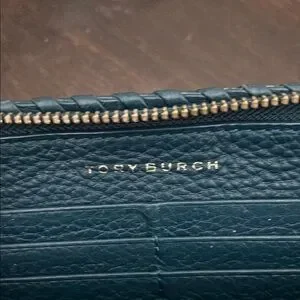 Tory Burch Teal Leather Marion Whipstitch Long Continental Zip Wallet