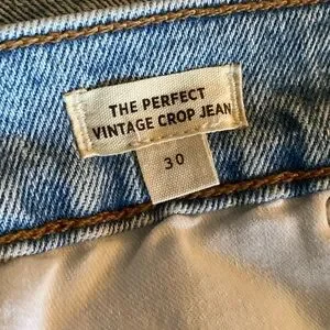 Madewell the perfect vintage crop Jeans, in Reinhart wash, light blue. NWOT. Size-30. Inseam-28”. crafted from premium denim for a comfortable fit. Medium rise. Front-Button and zipper closure. 3 pockets. Belt loops. 2 back pockets. The classic straight cut offers a versatile look, perfect for any casual occasion. Enjoy the quality and durability synonymous with Madewell's craftsmanship.