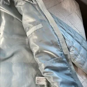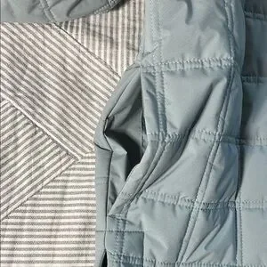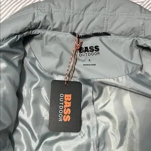 Elegant quilted jacket by Bass Outdoor. It is very lightweight and comfortable. Bought this for me but it is too big. Will fit better on someone 5'4" or above. It's a bit oversized and may fit a medium. Fabric is 100% polyester. Measurements are approximate: