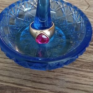Small Pink and Gold Tone Ring with Heart Design