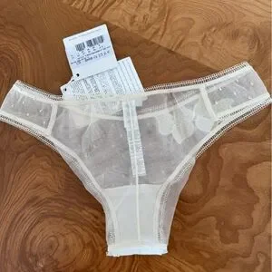 La Perla Cream Lace Panties with Sheer Panels