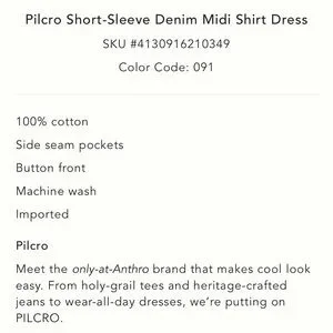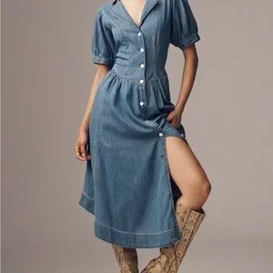 NWT Anthropologie Pilcro Short Sleeve Denim Button-Up Midi Shirt Dress
