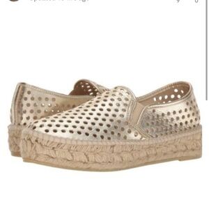 Loeffler Randall Rowan Gold Perforated Leather Espadrille Slip-Ons Size 37