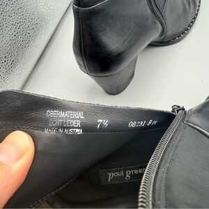 PAUL GREEN Stella Stud Black Leather Block Heel Booties Size us 7.5