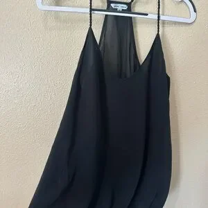 This relaxed camisole from Naked Zebra features a sleek black design, perfect for a chic and effortless look. The smooth fabric and camisole style make it an ideal choice for both casual and dressy occasions. Size medium