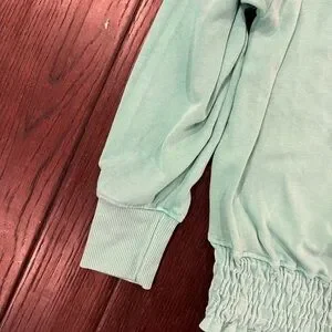 This Sundry sweatshirt in a refreshing green hue features a comfortable crew neckline and long sleeves with ribbed cuffs. The elastic waistband creates a stylish gathered effect, making it a perfect choice for casual outings. Crafted from soft material, it offers a relaxed fit for all-day comfort.