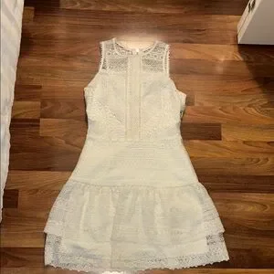 Parker White Pleated Tiered Halter Mini Dress | Size XS