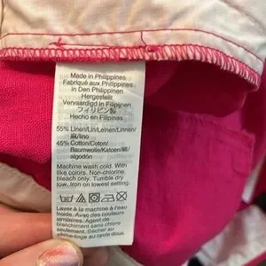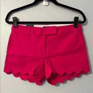 New with tag. Hot pink. Linen blend (see photo). 4” inseam. Scalloped hem. Size 0.
