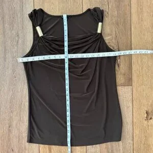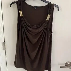 Chaus Brown Sleeveless Top with Gold Trim Accents on Shoulder. Women’s Size Med.