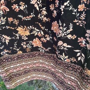 Elegant women's dress featuring a beautiful floral pattern. The black, brown, pink colors create a stunning contrast, perfect for any occasion.