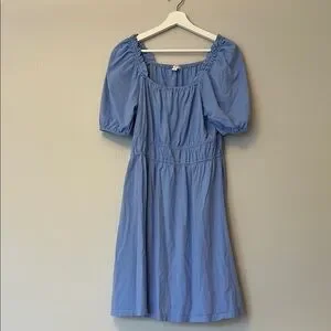 J. Crew Blue Smocked Puff Sleeve Midi Sundress
