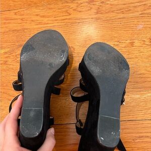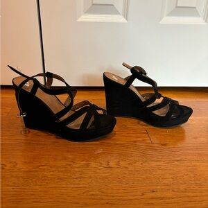 Step out in style with these elegant black strappy wedge sandals. Perfect for any occasion, they offer both comfort and sophistication.