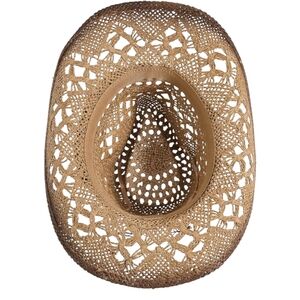 QWINEE Ombre Bead Decor Hollow Out Cowboy Hat Straw Cowboy Cowgirl Hats Summer B
