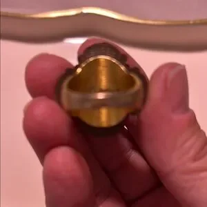 This exquisite gold-toned statement ring features a captivating central stone, perfect for adding a touch of elegance to any outfit. Ideal for special occasions or everyday wear.