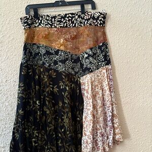 Step out in style with this elegant patchwork midi skirt. Featuring a stunning black and gold design, it's perfect for any occasion. Add a touch of sophistication to your wardrobe.