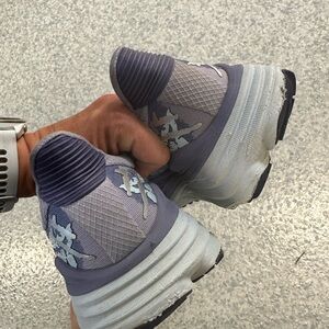 Experience unparalleled comfort and support with Hoka's athletic shoes, featuring a sophisticated blend of blue and gray hues. Designed with a mesh upper and traditional lacing, these shoes offer a breathable fit perfect for road running. Enjoy the brand's signature thick cushioning for a smooth and cushioned ride.