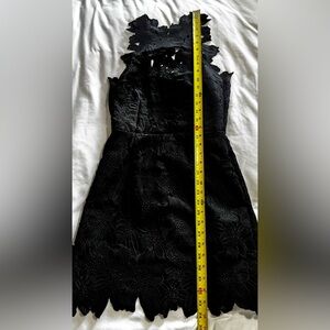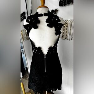 Saylor + Free People collab, Jessa crocheted black mini dress, measurements in photos. Size Small.