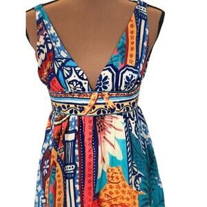 Farm Rio Sleeveless Forest Tiles V-Neck Midi Dress – Size XS