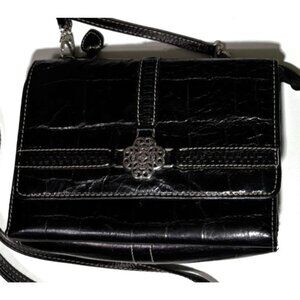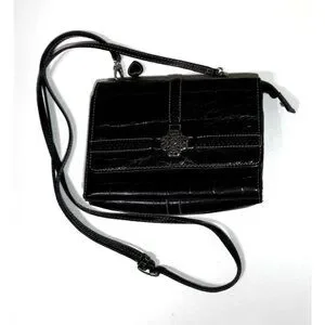 Brighton Small Crossbody Purse Bag Clutch Pebbled Black Crocodile Embossed