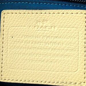 Beautiful Blue/White coated canvas w/off white leather trim . Measures Approx: 16" W x 10" H x 7 5" D.