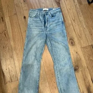 Stylish straight leg jeans. Light blue wash. Perfect for casual wear.