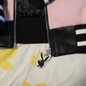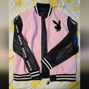 Chic PLAYBOY letterman jacket. Pink body with black sleeves. Bold logo on back. No flaws.