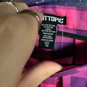 Hot Topic Pink and Black Mini Skater Skirt with Pleated Style