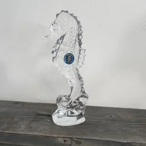 Stunning crystal seahorse with a striking blue accent. Ideal for adding elegance to your home decor.