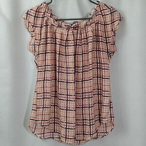 LC Lauren Conrad Plaid Cap Sleeve Blouse Size Small