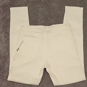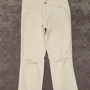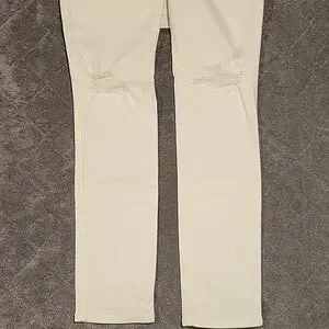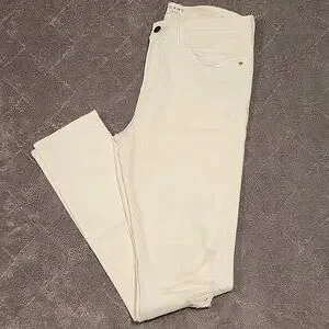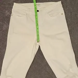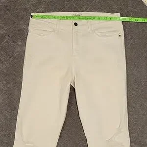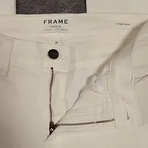 Experience the sleek and modern fit of Frame Denim's distressed white skinny jeans. These jeans offer a clean, bright white color and a smooth texture, perfect for a polished look. Ideal for any occasion, they provide a timeless style with their full-length silhouette.