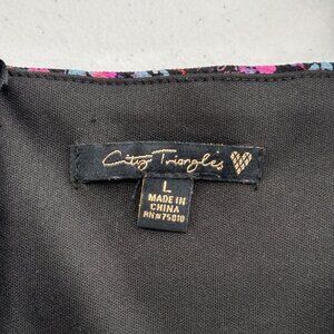 City Triangles Black Pink Floral Mini Dress Puff Sleeves Size L Ruffle Milkmaid