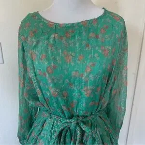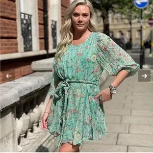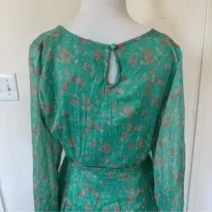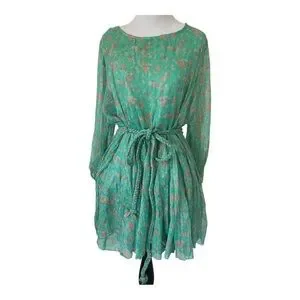 Boho Summer Mint chiffon ditsy floral print mini dress with Belt Italian Size 6