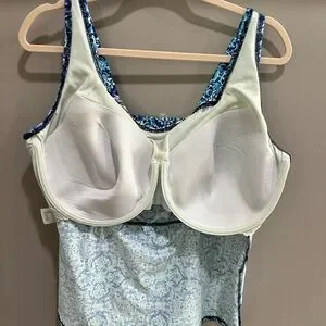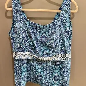 Make a splash with this Lands' End swim tank, showcasing a striking blue color and eye-catching embellishments. The sleeveless, cropped design is perfect for sunny beach days or poolside relaxation. Enjoy a stylish and comfortable swim experience with this chic tank top. Excellent condition.