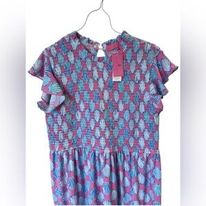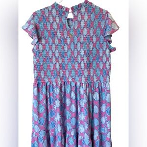 For sale is a Women’s Simply Southern Shells Tiered Midi or Maxi Dress. Smocked and Ruffled. Pink, Teal, & Blue colorway. Size XL, NWT