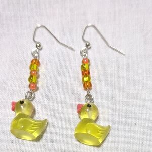 Adorable Dangle Duck Earrings Orange And Yellow Transparent
