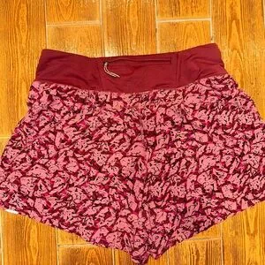 Experience comfort and style with these REI athletic shorts, featuring a vibrant pink and red color scheme. The intricate pattern adds a touch of elegance, making them perfect for both workouts and casual outings. Crafted from lightweight fabric, these shorts ensure breathability and ease of movement.