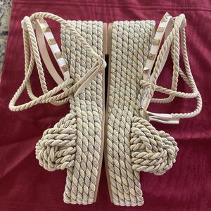 Ankle Wrap around rope detailed platform espadrilles